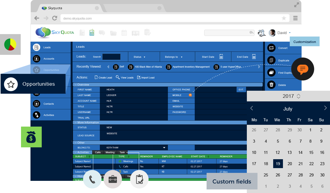 SkyQuota’s sales management platform is designed to help you visualize your sales opportunities and take control of your forecasts. Add sales stages, next steps, and lead-driven statistics to improve your sales process and close deals with confidence.