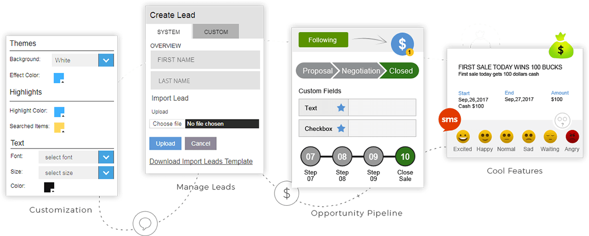 SMS is often preferred to send alerts, process and order status updates and reminder messages. That’s why we have integrated SMS services with our sales management platform, allowing you to automate workflows for sending personalized and event-specific messages in seconds.